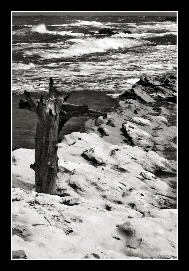E' una immagine strana ed interessante ma, a mio parere, soffre di un certo squilibrio compositivo. Vedo due mari in tempesta, quello solido , che occupa un piede preponderante e chiaro in primo piano, e quello liquido, solcato dalla spuma del mar mosso e vivo di una incessante alternanza fra chiari e scuri. Il colpo d'occhio complessivo affoga in una tempesta di contrasti e, trova solo, all'estremità superiore, la sottile scialuppa di quella striscia di cielo incerto.