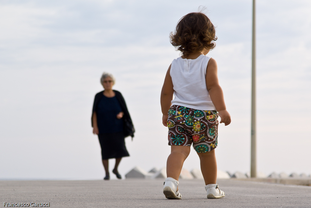 Sembra la scena di un duello in "per un pugno di dollari" dove invece dei pistoleri ecco che compaiono come figuranti una piccola bambina e quella che potrebbe essere la sua nonna. Sicuramente con la sua simpatia e amorevolezza nonchè tenerezza la nonna finirà per deporre le armio e abbracciare la sua amata e bella nipotina.