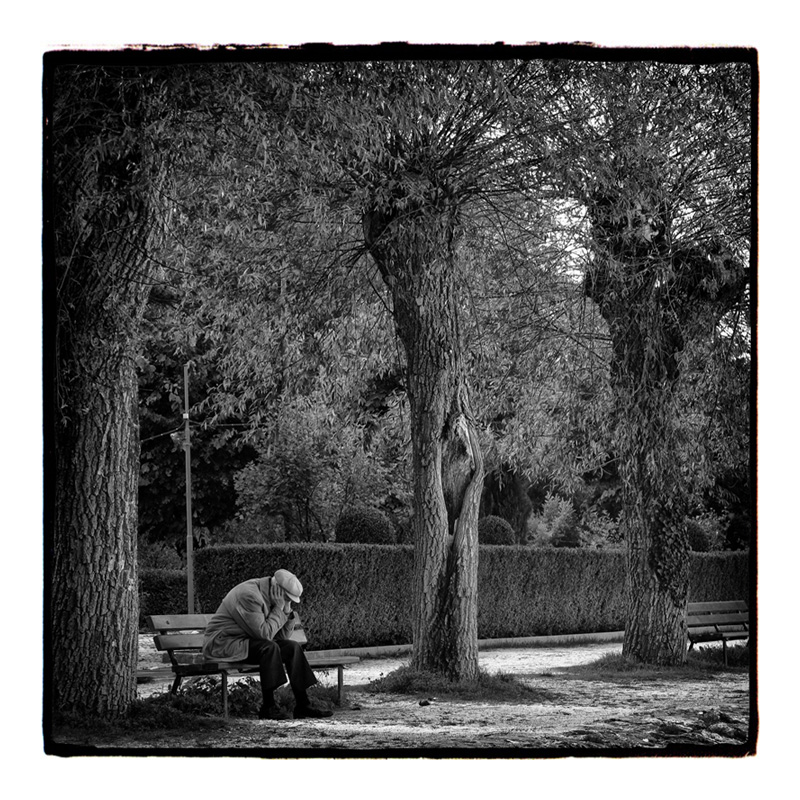ma al di là delle questioni puramente tecniche (dove magari sarebbe da contestarti quel palo che sbuca prepotentemente da dietro la panchina, facilmente eliminabile, secondo me, vista la scelta nell'optare in un formato, in un bianco/nero e in una cornice che si discosta un bel pò dal genere in cui la presenti) devo dire che l'immagine ha un suo quid, è fortemente evocativa, la figura del protagonista nel primo terzo a sinistra ha un forte potere di tridimensionalità, fa sentire l'osservatore dentro la scena, si ha la sensazione di ''passare'' non davanti la superfice della fotografia, ma proprio dentro la fotografia....questo è un grande pregio della foto, sicuramente la tua mano in post-produzione è molto forte, ma anche molto personale, il che non guasta.