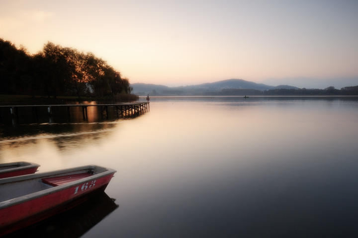 .....l'immagine vive di due dimensioni differenti... la parte di destra più morbida sia nei toni che nella resa appare delicata... la parte di sinistra invece presenta ombre molto chiuse e toni resi quasi acidi sulle fronde degli alberi..... buona la costruzione anche se le imbarcazioni a metà mi restituiscono un senso di incompleto.... l'orizzonte pende un pochino Wink