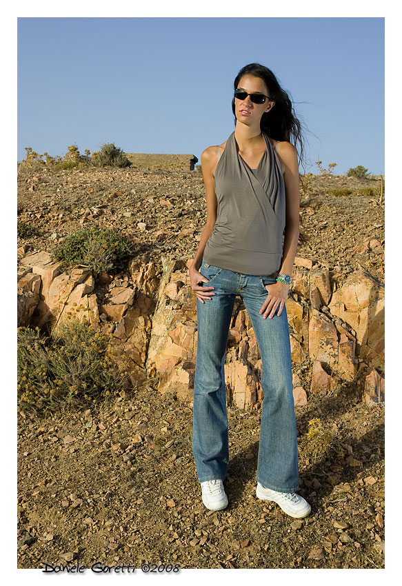 Strobist info: approccio molto rozzo, senza stativo, senza ombrello e senza gel. Flash su basetta poggiato per terra a fare da luce secondaria, 45° sulla destra. Il sole al tramonto faceva da luce principale, 45° sulla sinistra.