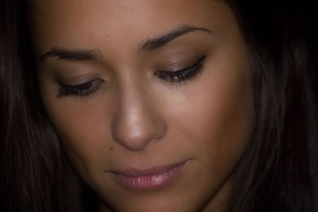 La prima cosa che ho notato è lo sguardo rivolto verso il basso che rende davvero naturale questa immagine suggestiva. La modella, davvero molto carina, sembra assorta in pensieri forse un po' tristi.