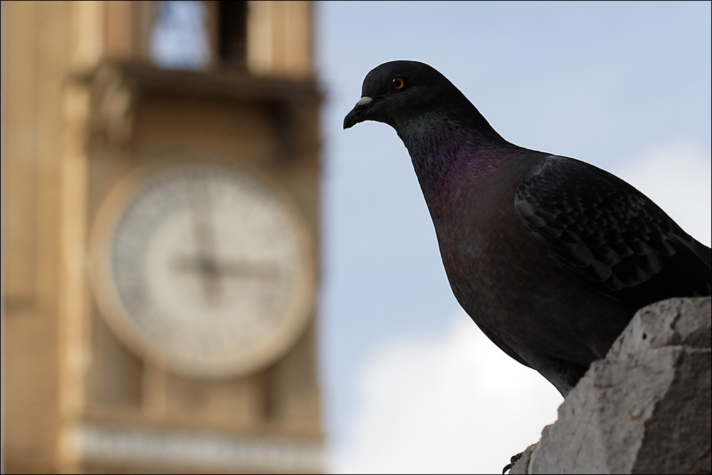 con quel titolo mi sembra una foto molto simpatica, sembra che sia il piccione ad annunciare l'ora. Ottima maf del piccione però, dato il titolo, avrei messo a fuoco l'ororologio. Anche così, comunque, come foto mi piace molto. _________________ VISITA LUCEDIPERLE, IL MIO SITO