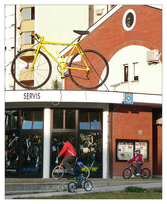 assolutamente nel tuo stile.. ottimo scatto belgarath, anche per la successione da bimbo, ragazzo, adulto, e bici enorme che suggerirebbe anche la presenza (ironicamente) di un gigante lì in zona, tipo un andrè the giant o un primo carnera  |
