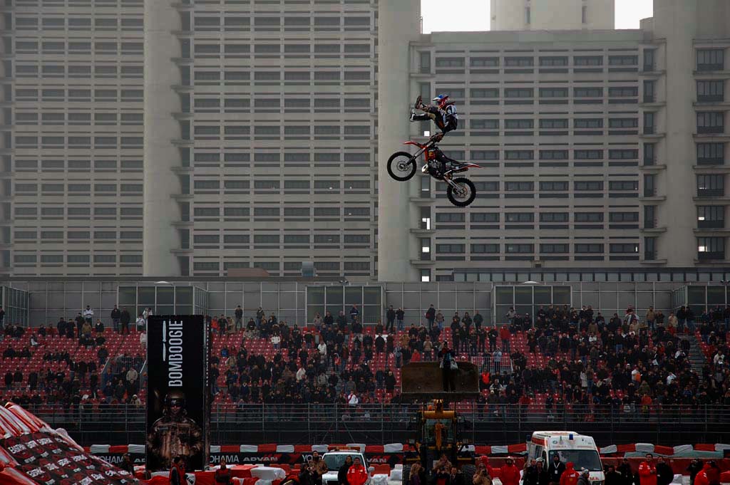 Bello scatto, ben immortalato il salto, anche se avrei preferito un taglio verticale per la foto, ci sono troppi elementi di disturbo e il motociclista non riceve la giusta attenzione da chi guarda la foto, cmq complimenti!
