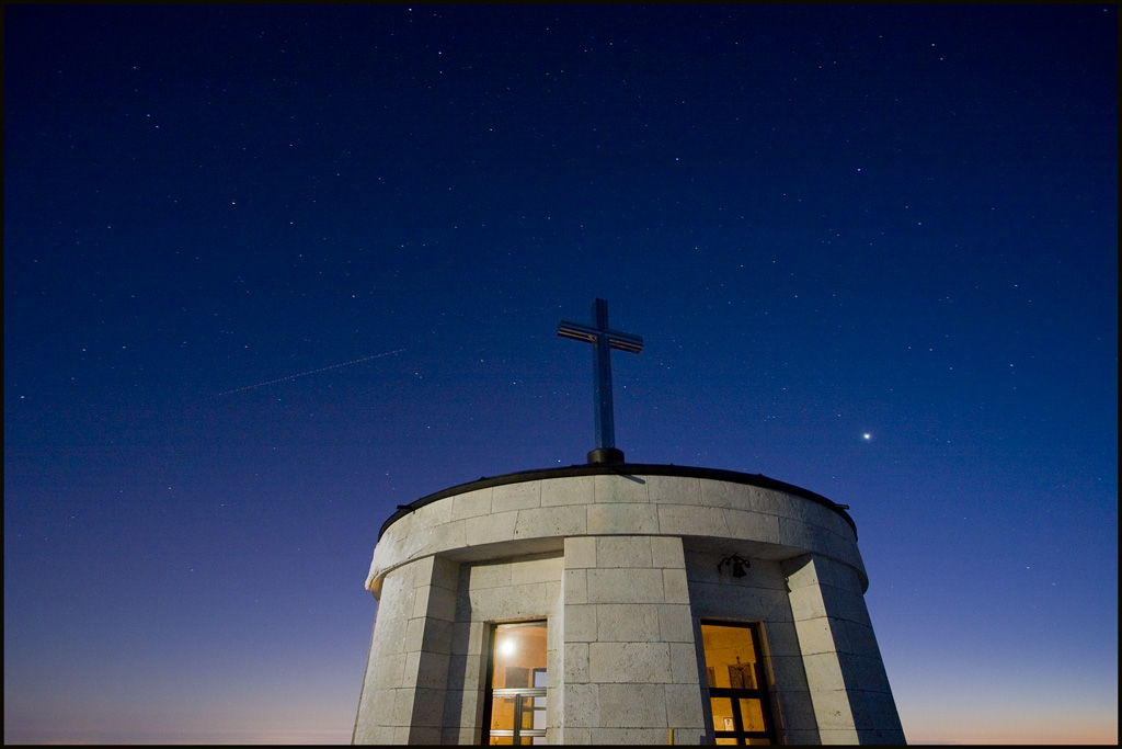 però così facendo avrei perso il riflesso della luna piena sul vetro della cappelletta(è la cappella che c'è in cima al monte Grappa(1775m slm),infatti la luce che illumina l'esterno è della sola luna a 200Iso.