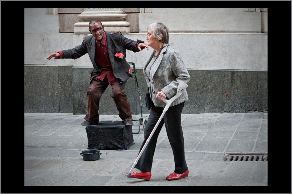 io la trovo divertente, forse potevi prendere la signora un metro prima |