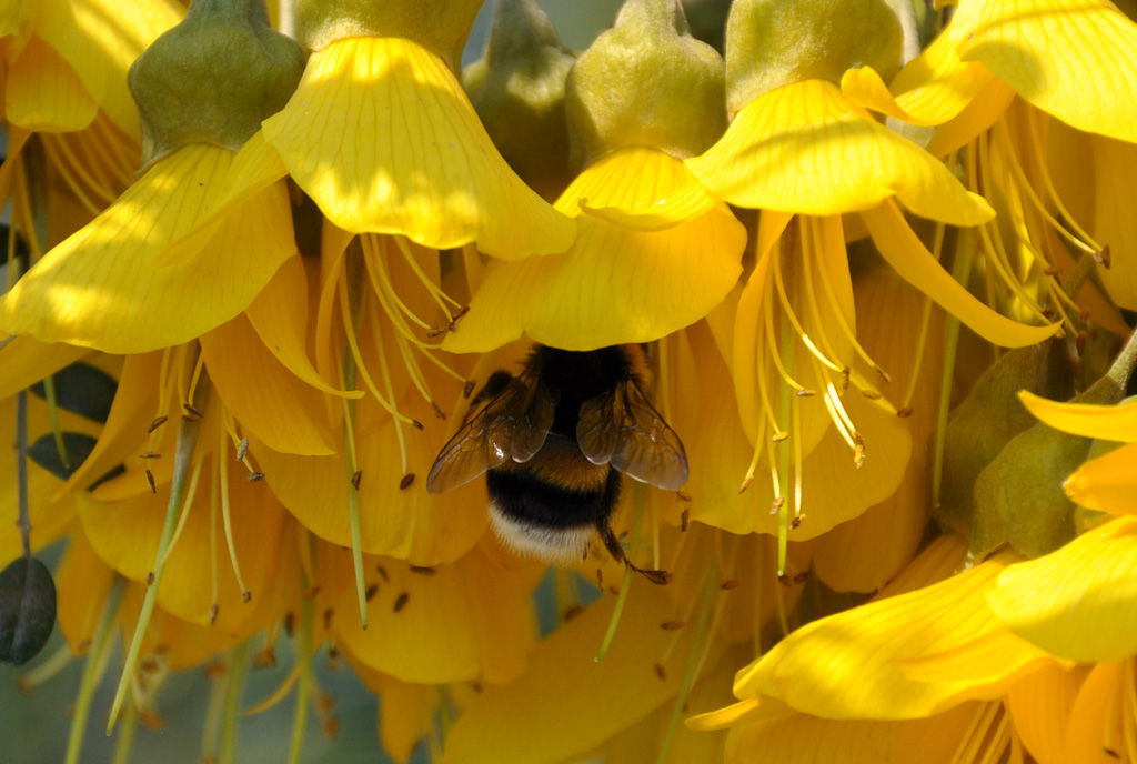 Vedendo l'immagine credo tu non abbia utilizzato un'ottica macro, quindi forse non potevi stringere maggiormente sul soggetto. Naturalmente avresti dovuto cambiare prospettiva. Essa ti avrebbe permesso di vedere meglio il bombo. Esempio posizionandoti sul lato, cercando di inquadrare il capo.
