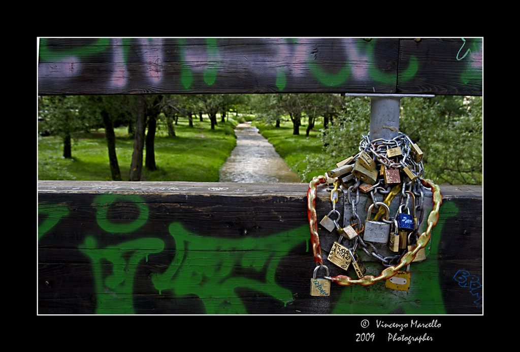 Trovo che il titolo sia troppo forte rispetto l'immagine: è vero che la strada potrebbe indicare un percorso da seguire ma è anche vero che nessuno la sta percorrendo, mancano anche gli ostacoli lungo la strada, manca infine l'amore, rappresentarlo con la moda passeggera dei lucchetti mi sembra un po' limitativo...sarà che ho una diversa visione dell'amore.