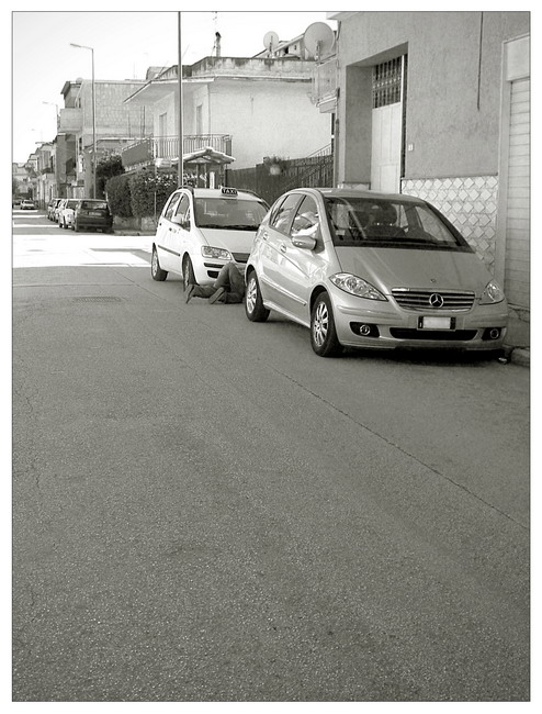 Diciamo che ho lasciato che lo spettatore scoprisse non subito l'uomo accovacciato, scrutando la foto, quasi stesse giocando lui stesso e dovesse cercare gli altri nascosti. Effettivamente mi rendo conto che ho ecceduto: le gambine sono troppo piccole in un contesto così ampio. Mi dispiace di aver scattato solo questa (che tra l'altro è stata già rifilata di un pochino) e di non essermi avvicinato di più al soggetto. Probabilmente se mi fossi abbassato anch'io, avrebbe giovato.