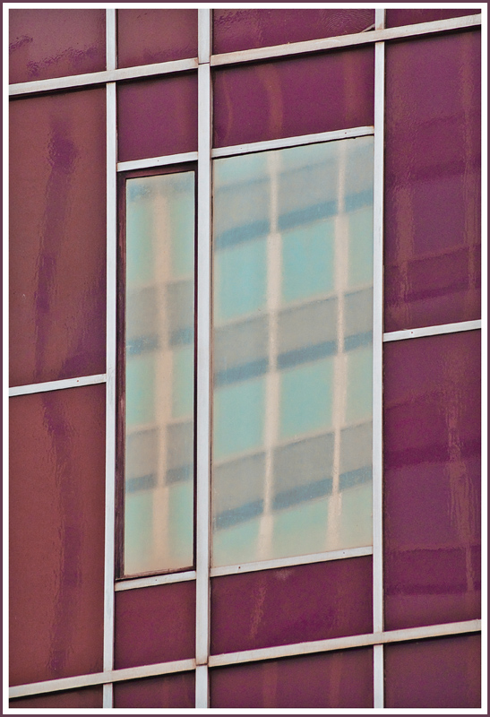 Seppur in architettura a mio avviso nella foto prevale l'aspetto di ricercatezza grafica più che una rappresentazione di un particolare architettonico. Molto è affidato all'accostamento davvero particolare e interessante dei colori e al gioco dei riflessi.
