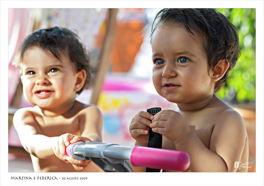Le bambine sono bellissime, e lo si e' gia' visto in altre due foto, ma qui una situazione di luce forse un po' infelice, in combinazione con la profondita' di campo sembra aver fatto una foto da due diverse: a destra toni morbidi ed un incarnato molto realistico, a sinistra invece toni piu' duri e marcati, con transizioni brusche ed un effetto quasi da fumetto, in combinazione con lo sfocato. Puo' darsi che sia stata una scelta precisa, non posso saperlo (e forse anche la compressione dell'immagine ha contribuito) ma l'impressione che ne ho avuto e' quella di due foto differenti giuntate insieme, e' un'impressione "strana", che mi lascia un po' perplesso, personalmente.