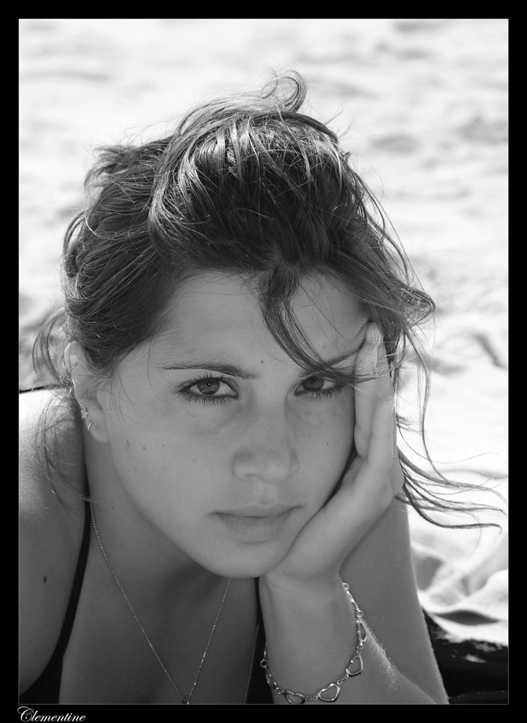 Non mi piace perché doveva essere inquadrata più in basso, tagliando così quello spicchio di mare (?) che è dietro, inquadrando così in basso il decoltè fino a vedere il ciondolo. E poi perché è piatta. Un vero peccato, perché questo è un viso molto molto bello e perché l'espressione così semplice e disinvolta è veramente bella.