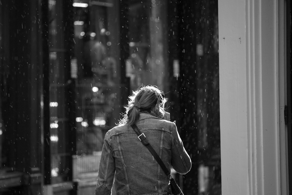che dipinge la chioma della donna sotto la pioggia. Il tuo personaggio non riesce a sostenere tutta la fotografia perchè lo riprendi di spalle, a mezzo busto, senza particolari atteggiamenti. L'occhio street cerca qualche collegamento fra il personaggio e l'ambiente ma non rimane appagato: non riusciamo a interpretare la scena. La composizione del fotogramma presenta qualche dubbio: un personaggio troppo centrale e una massa chiara sulla destra del fotogramma senza funzione, non allineata con i bordi del fotogramma che fa perdere l'equilibrio dell'organizzazione generale. Il consiglio è quello di trovare un miglior polo narrativo per raccontare un piccolo fatto quotidiano della strada.... Wink