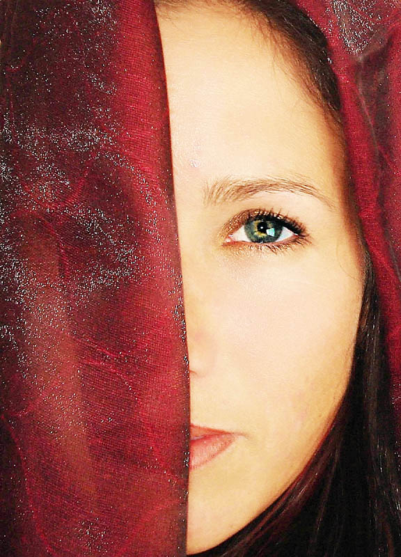 Allora, l'idea e la composizione del ritratto mi piacciono molto, molto intrigante il mezzo volto coperto dal velo.