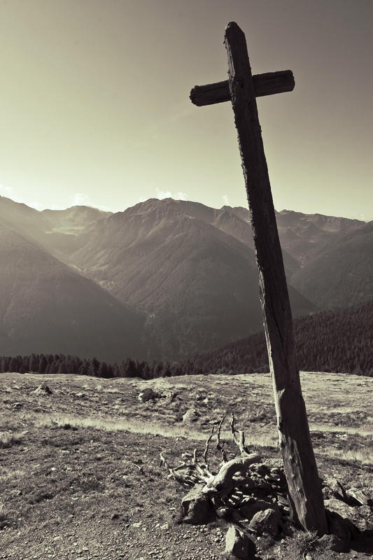 La mia idea è quindi quella di veder questa croce a protezione del paesaggio circostante....forse un'alternativa ciò che ho suggerito potrebbe essere l'aprire il diaframma sfocando, e rendendo quindi molto vago ed indefinito, lo sfondo....forse....forse eh...