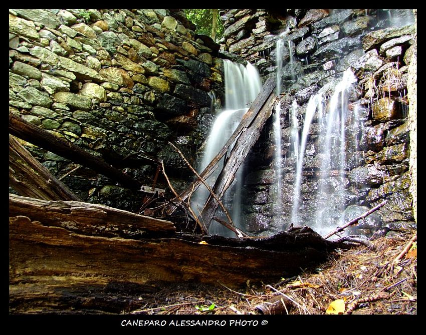 L'ambientazione è bella e coinvolgente, ma forse è proprio questo che distoglie attenzione al centro di interesse, infatti l'acqua appare un pò sacrificata dalla luminosità del tronco in primo piano e della texture del muro che è decisamente invadente.