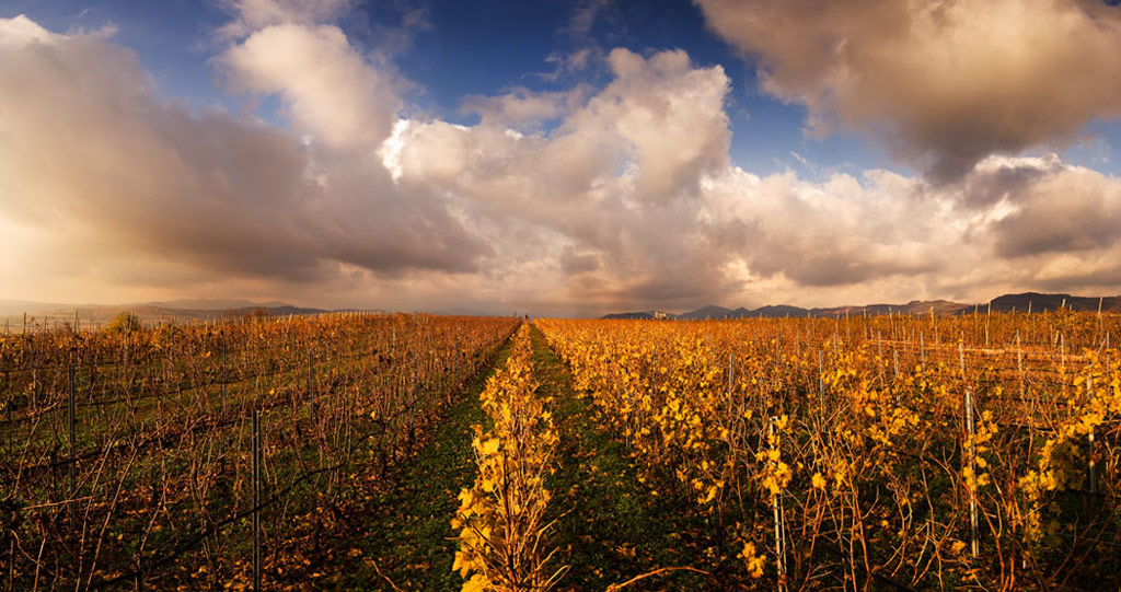 Il punto di ripresa sopraelevato giustamente rafforza la profondità descritta dai bei filari in abito autunnale,ma sul pp manca un poco di quel dettaglio necessario a dare corpo alla materia,forse anche a causa dell'esposizione al limite del giallo.