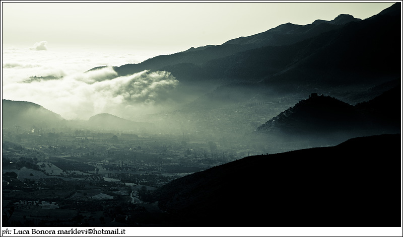 Davvero molto bella, bello il gioco di luce sulla pianura e le varie tonalità di grigio/nero sulle montagne.