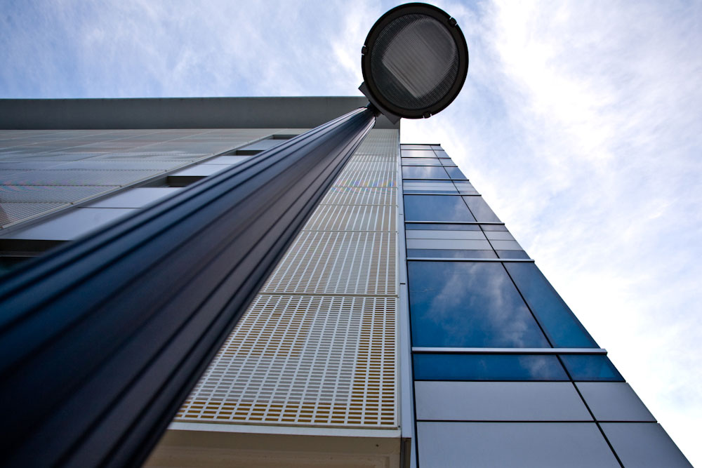 Bellissimo effetto di movimento con la sfocatura iniziale che porta l'occhio sino in cima. Mi fà anche un effetto come se il portalampada stesse per schiacciare lo spettatore.