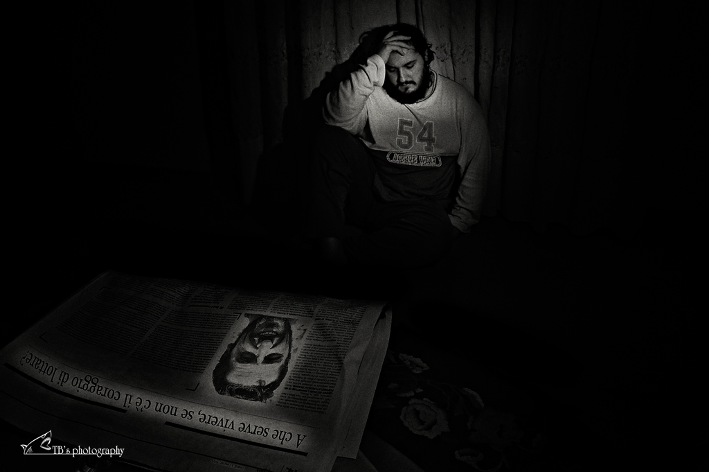 Una foto che ricorda un episodio su cui pensare con dolore... e nella tua foto questo concetto è ben costruito con il buio d'intorno e la luce che colpisce il giornale ed il soggetto. bravo!