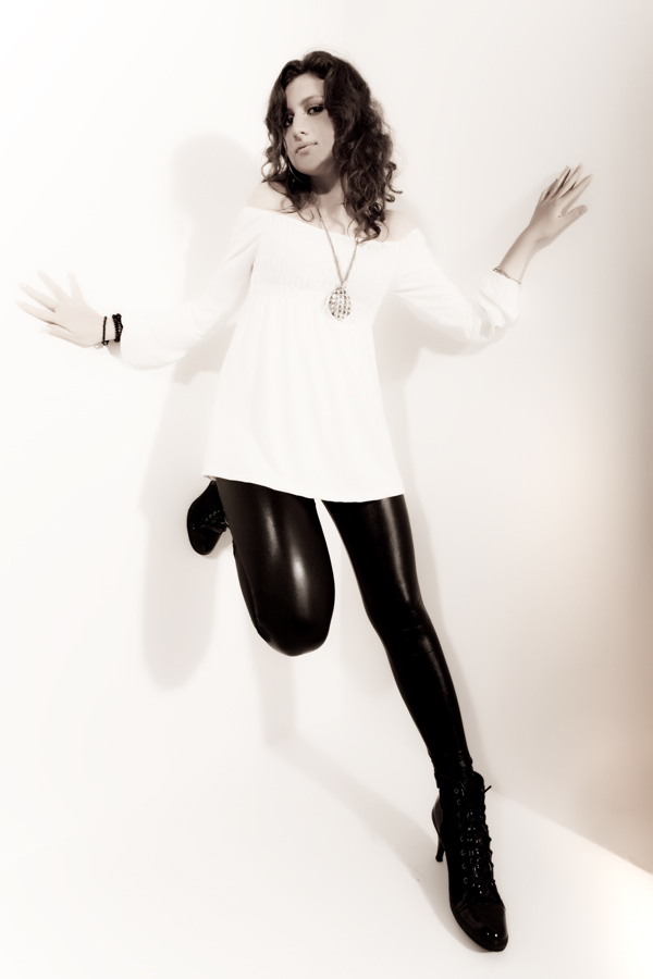 Avrei evitato di farle mettere la gamba destra in quel modo. Il quadricipite in quella posizione sembra essere quasi il doppio della gamba sinistra e l'effetto non è esteticamente bellissimo.
