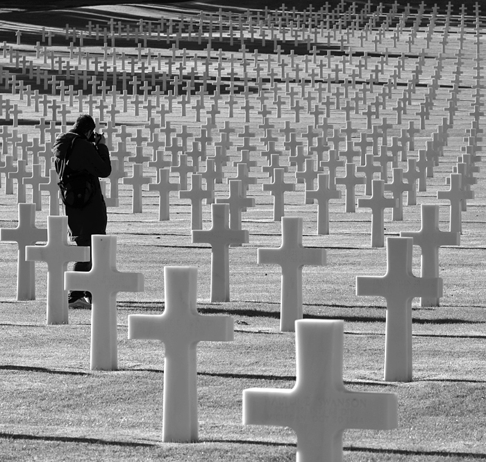 Umanamente coinvolgente, tecnicamente molto ben fatta, allineamenti che si incurvano dolcemente nell'immagine per effetto dell'andamento del terreno, luce che trasforma il marmo in zucchero traslucido, il fotografo tutto nero in posizione importante ma non invadente. La tristezza della memoria, ormai lontana nel tempo, di un dolore cocente che ormai si è sublimato nel ricordo, un monito (purtroppo assai poco ascoltato) alle successive generazioni.