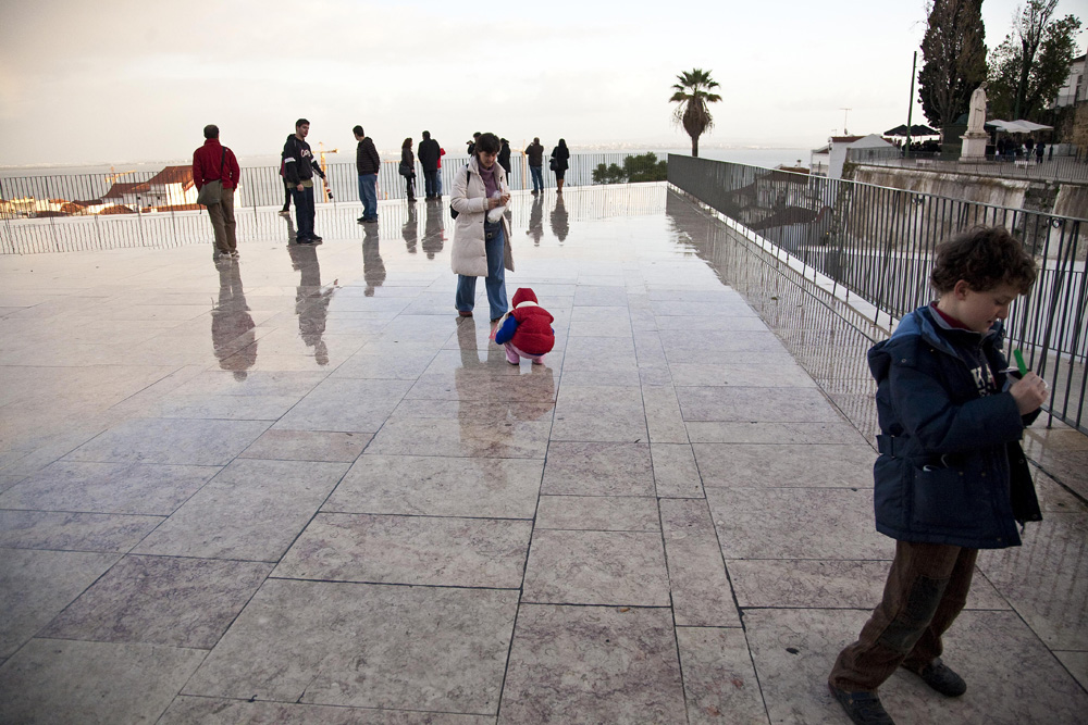 Per me è una foto riuscita, dopo aver osservato la scena l'attenzione cade sul ragazzo e a quello che ha fra le mani, la sua gestualità è catalizzante...fa sorridere la somiglianza della sua posa con la statua che s'intravede nello sfondo, mentre la scena alle sue spalle il bambino che gioca con la mamma ha più un'effetto evocativo, un misto di nostalgia/tristezza,