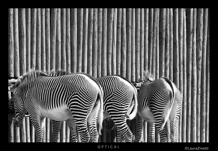 L'inquadratura è voluta per esaltare il gioco di bn e linee che caratterizza le zebre e lo steccato. Non potevo spostarmi neanche di un millimentro in più a sinistra ed ho tagliato volutamente in basso. Ho foto più centrali.. ma questa era quella che volevo realizzare.. quella che a colpo d'occhio mi ha colpito subito.