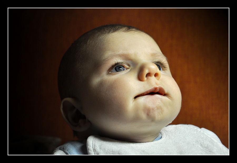 dal bavaglino e dalla buffa espressione delle labbra sembra proprio sia in attesa della "pappa"...