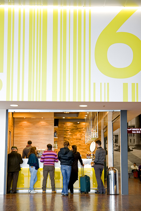 Se vuoi farmi contento, la prossima volta, se ci sarà , evita pure le sovrapposizioni fra i soggetti. Ricerca nella foto una sestina ben allineata (così il click diventa meno facile, ma più conquistato...e sò soddisfazioni ), tale da renderla facilmente indentificabile agli occhi dello spettatore. Il soggetto sul fondo a destra posso capire che aiuta a contestualizzare la scena (anche se con una diversa profondità di campo, probabilmente lo avresti reso meno visibile ). Sovrapposizioni ma soprattutto la presenza in più nella zona bancone, intralciano la conta del campione scelto e pertanto il messaggio può risultare meno diretto o anche del tutto assente.