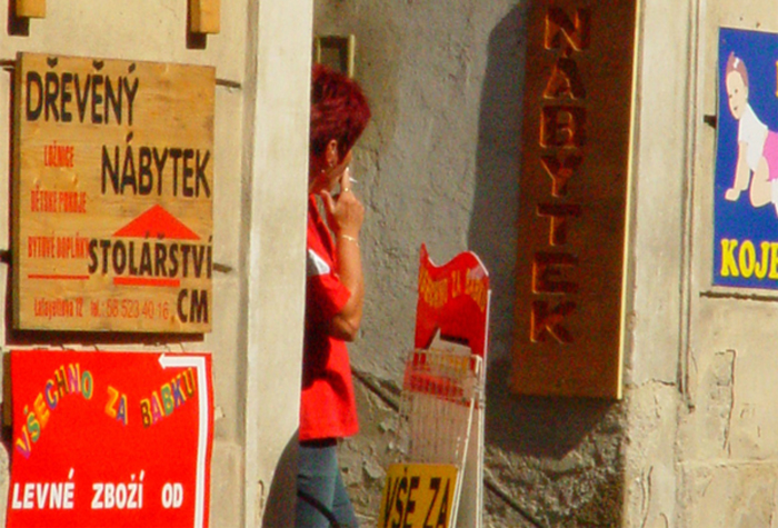 Non sono d'accordo, e Ti spiego perché : certo la qualità ottica è quella di una digitale, ma la foto non è anonima: la ragazza è nascosta, certo, e questo è tipico della "professione" , soprattutto in un paese (i cartelli sono di lingua ceca) che reprime la prostituzione specie se sulla pubblica via : poi mi piace molto ( è il mio parere personale) il cartello vicino che raffigura un bebe' lindo e pulito, che fa pensare all'amore "cristiano" e socialmente consacrato dal vincolo del matrimonio, insomma in stridente contrasto con il mestiere del personaggio raffigurato...