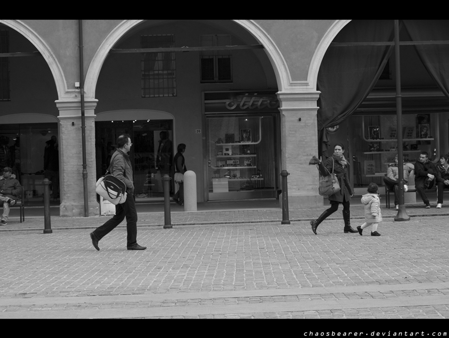inoltre, tenendo conto che eri già decentrato, avrei azzardato un passo in avanti (o dietro) per scoprire la testa del rgazzo da dietro quel lampione, a destra.