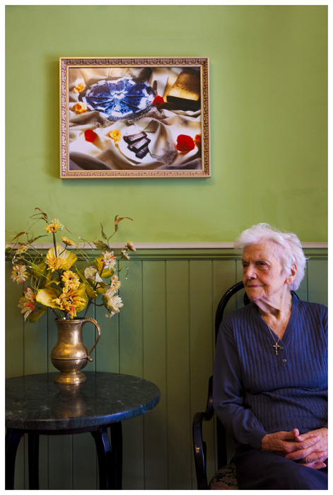 Se intendevi fare un ritratto, avresti dovuto tenere la signora al centro dell'attenzione mentre qui l'attenzione viene divisa fra il quadro, il vaso con i fiori e la signora. Anzi... mentre quadro e fiori entrano per intero, la signora no.