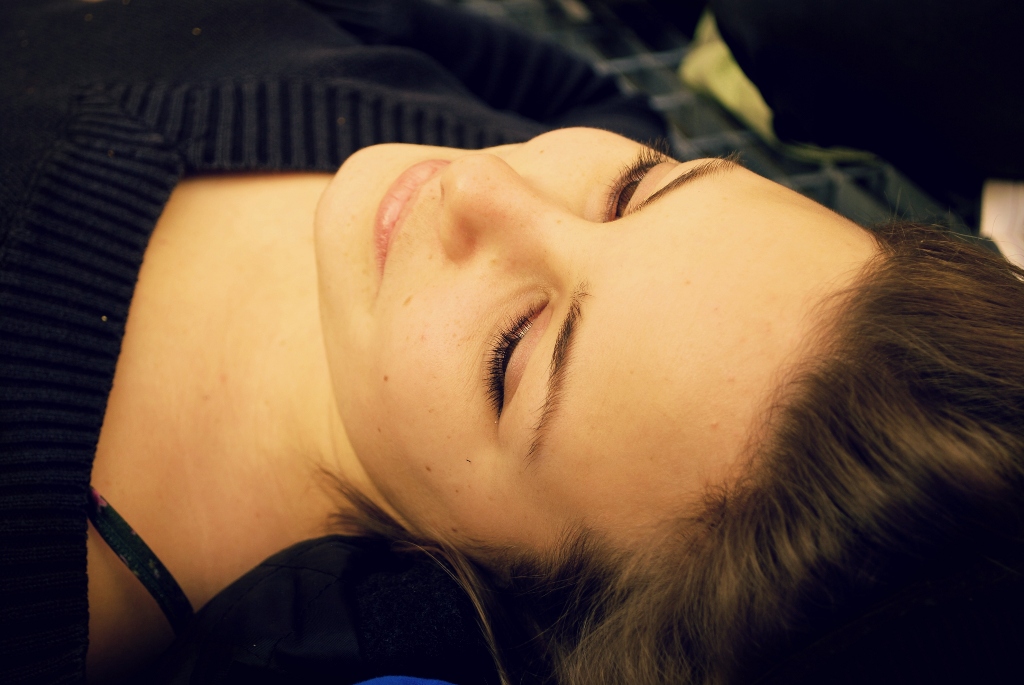 La spallina che emerge un po' disordinatamente dall'abito andava evitata, come il tratto estraneo di celeste in basso, forse un filo di giallo in eccesso nell'incarnato..... ma la ripresa ravvicinata è intima e convincente, interpretata in prima persona dalle ciglia protagoniste e dal sorriso sereno appena accennato.