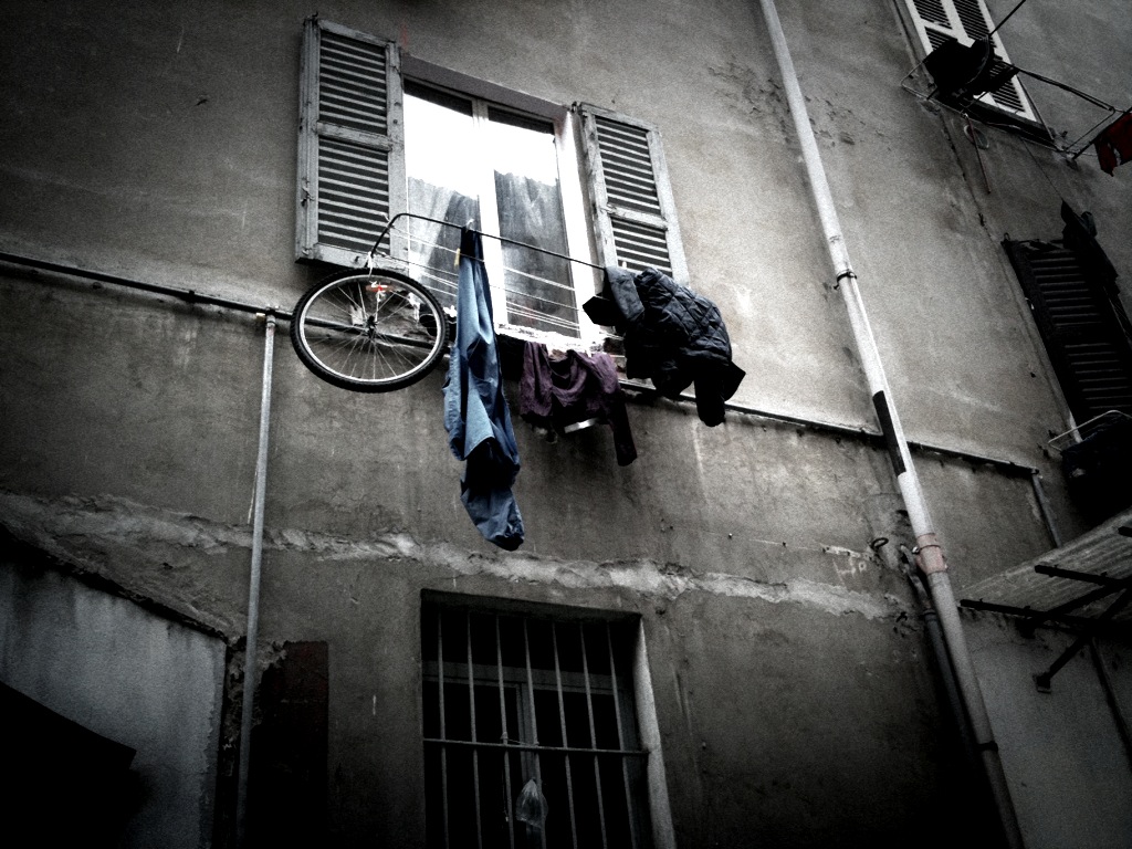 la parziale desaturazione e l'effetto vignettaura (spero siano i procedienti effettuati in pw...altrimenti correggimi...) convogliano lo sguardo verso i capi appesi ed ovviamente verso un capo leggermente strano...