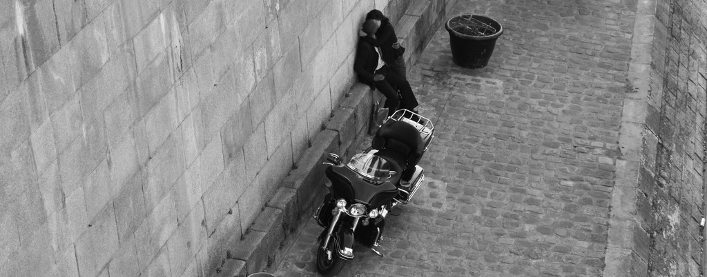 Punto di ripresa piuttosto infelice, il titolo potrebbe essere anche "moto a Parigi" o "vaso vuoto sul lungosenna".