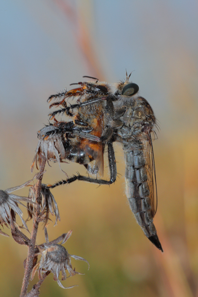 A parte questo (non conosco la specie dell'insetto ritratto) mi sembra un po' in "bilico", nel senso che si tengono su quel fiore secco un po' per "miracolo". Almeno a prima vista, anche viste le dimensioni dell' assassino.