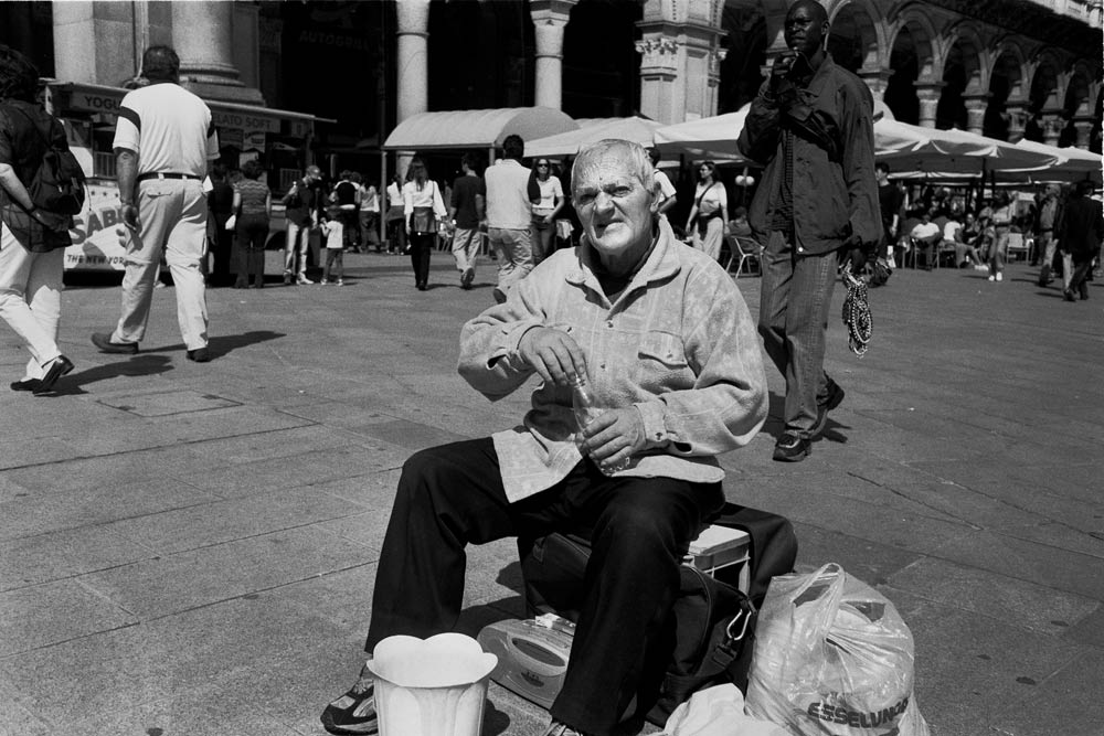 Poi la questione luce...molte volte scatto a mezzogiorno/l'una e la luce è la peggiore, qui contribuisce a disegnare alcune ombre fastidiose sul volto dell'uomo, la cui espressione è già turbatae sicuramente non è consenziente alla foto.