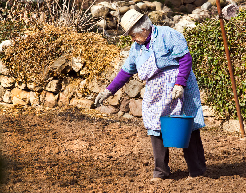 Hai colto una scena molto piacevole, dove l'amore per la terra si manifesta nella sua autenticità con quel gesto semplice e abituale compiuto dalla signora, forse avrei saturato un pò meno e fatto in modo di non inquadrare il paletto a destra, ma penso che lo scatto sia lo stesso riuscito nel suo intento, complimenti