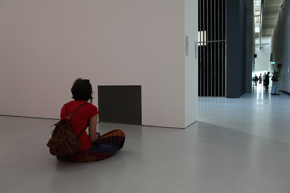 ...l'immobilità della ragazza contrapposta al movimento dei visitatori in fondo...