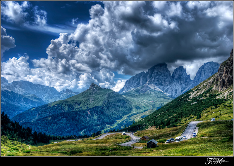 Per prima cosa, ho forti dubbi che si tratti del Falzarego, da cui il Sassolungo proprio nun se vede..... penso che sia piuttosto il Pordoi!!
