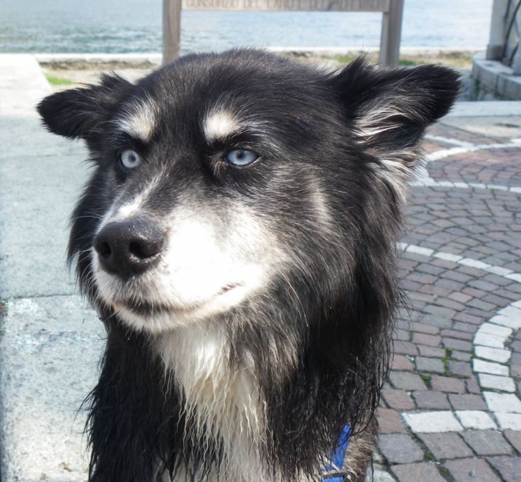 Hai fatto bene a metterla in "Ritratto". Quello che mi colpisce di questa foto, oltre naturalmente al colore degli occhi, è la posizione della testa in relazione al collo, che ne fa veramente un ritratto quasi umano. Peccato per la profondità di campo limitata, che impedisce la messa a fuoco di naso e occhi assieme (ma col muso dei cani è un classico).