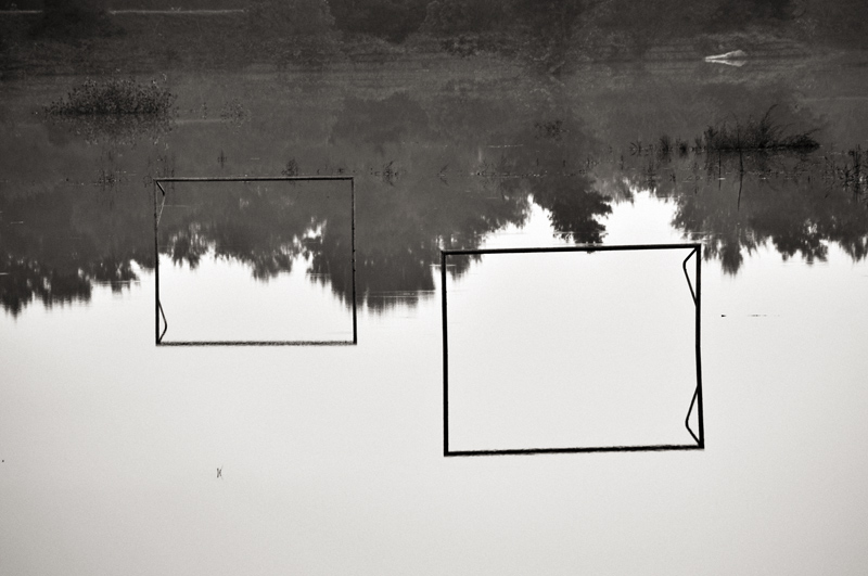 Molto ben resa come illusione, due porte da calcio "immerse" nella loro migliore rappresentazione: due cornici sospese nel vuoto, quasi a rappresentare le diverse realtà economiche, sportive e geografiche con il calcio giocato a livelli arci-milionari, ma anche a sintetizzare quel che è il mondo capovolto del calcio moderno, e senza polemizzare sull'argomento, a buon intenditor poche parole. Una doppia illusione, in un altrettanto esplicito racconto.