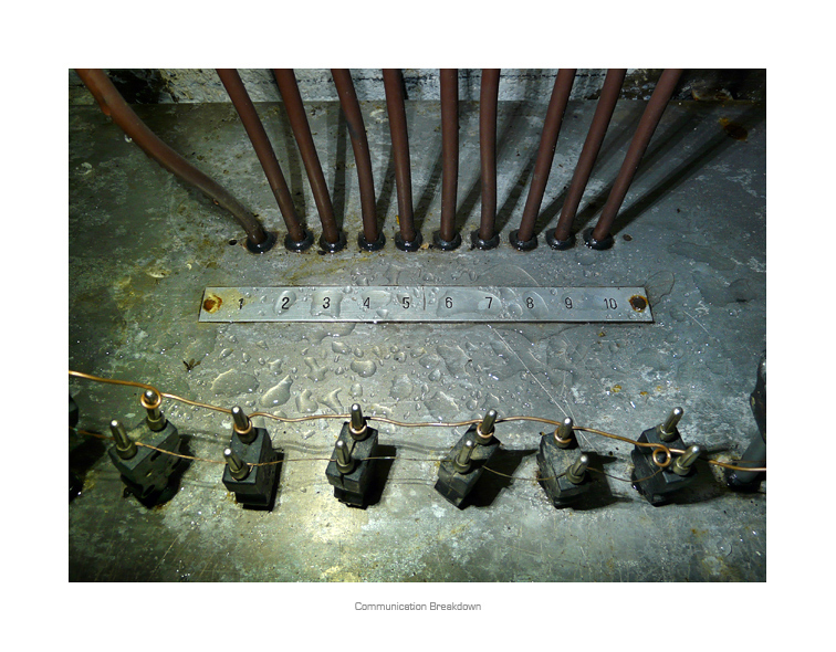 Per me questo insieme di fili , spinotti e tubi sarebbe risultato enigmatico se non ne avessi scritto la funzione nell'intro ... fotograficamente parlando, la loro disposizione e relativa numerazione mi ritornano un ordine quasi rigoroso, militare...che sopravvive alle intemperie e i disagi del luogo ...ma spezzato (forse...e se non erro) sull'ultimo elemento a destra...