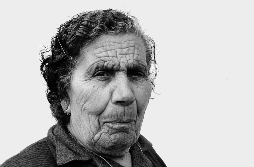 Lo sfondo neutro costringe a tornare ad osservarla, nel reticolo delle rughe e nelle onde dei capelli, e ancora gli occhi: per questo avrei tenuto il contrasto un po' più leggero, in modo da favorire la leggibilità nelle ombre.