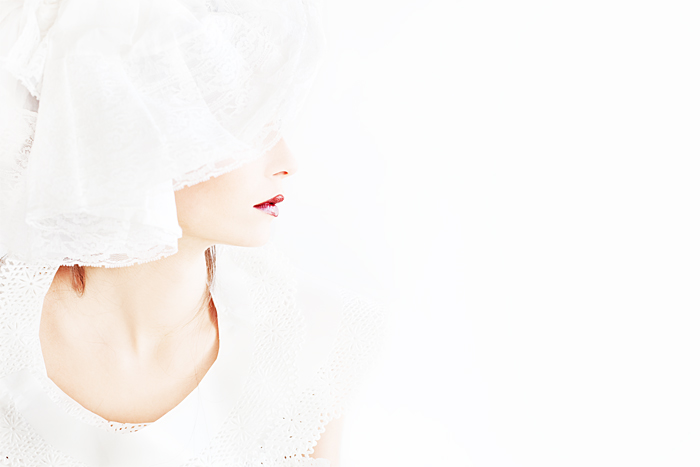 Basta il rubino delle labbra a fermare con decisione l'immagine, con l'impatto di una caratterizzazione indelebile. Per questo avrei forse addirittura preferito una essenzialità ancora più radicale, con l'assenza delle sottili ciocche di capelli che sfuggono birichine dal bianco.