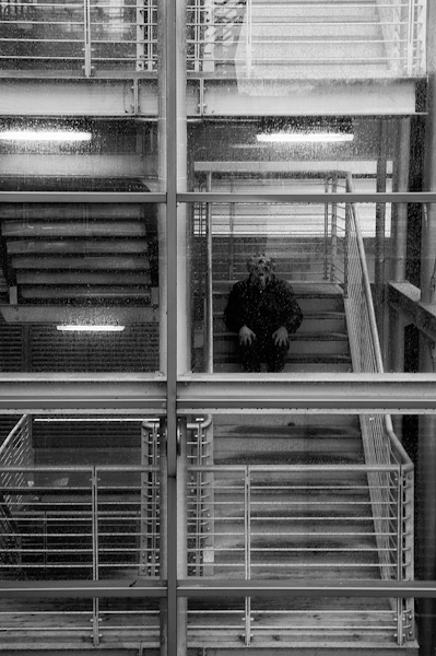 La figura che compare nelle foto è indubbiamente strana. Il suo volto, agli occhi di un ossevatore, vuole rappresentare qualcosa, diciamocelo, di non troppo rassicurante a vedersi, anche per il contesto in cui è ripreso: un luogo probabilmente pubblico, ma deserto, quindi una situazione che sembra alludere ad una presenza che abita questo luogo all' insaputa della gente e con cui si può venire in contatto in maniera inaspettata in determinati momenti.