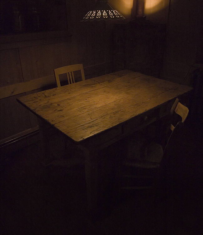... secondo me se chiudessi la scena, in alto, poco sopra la griglia luminosa della lampada otteresti un spinta maggiore verso l'aspetto iconografico delle sedie abbandonate in quella posizione, che altrimenti diventano subordinate al punto luce in alto nella lettura complessiva.