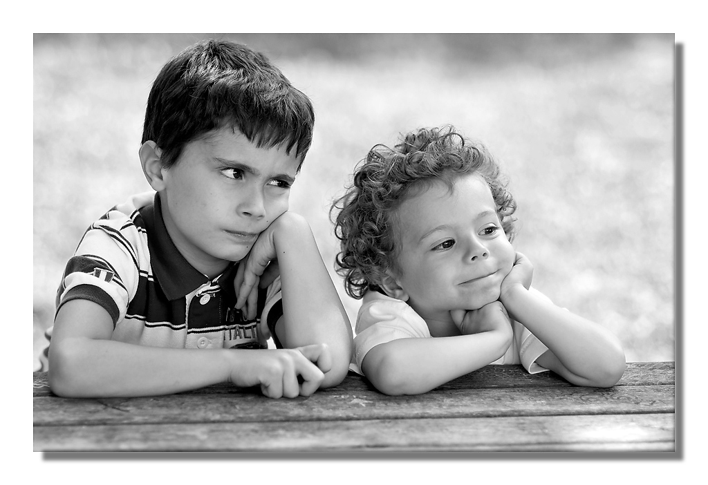 mi piacciono le espressioni colte.... il piccoletto sembra stia contemplando e gustando l'ultima marachella fatta mentre l'altro guarda l'ormai irreparabile danno con ponderata rassegnazione...